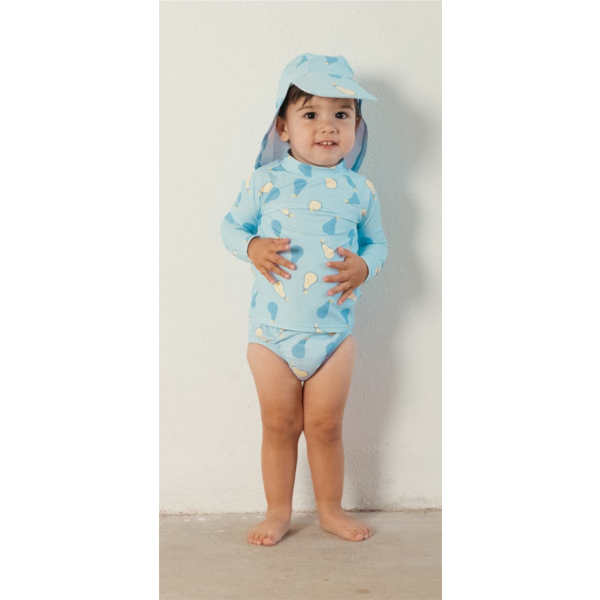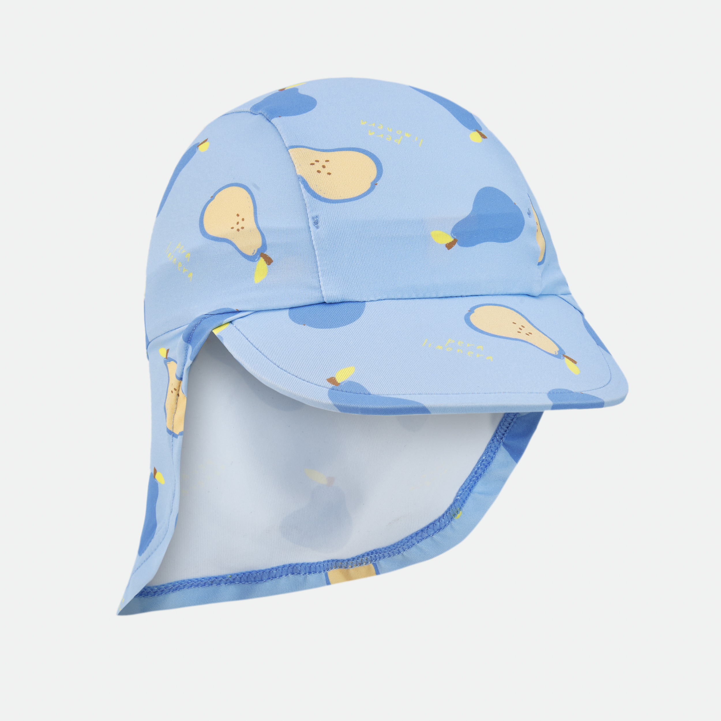 Gorrito de baño con visera y solapa trasera para proteger del sol.